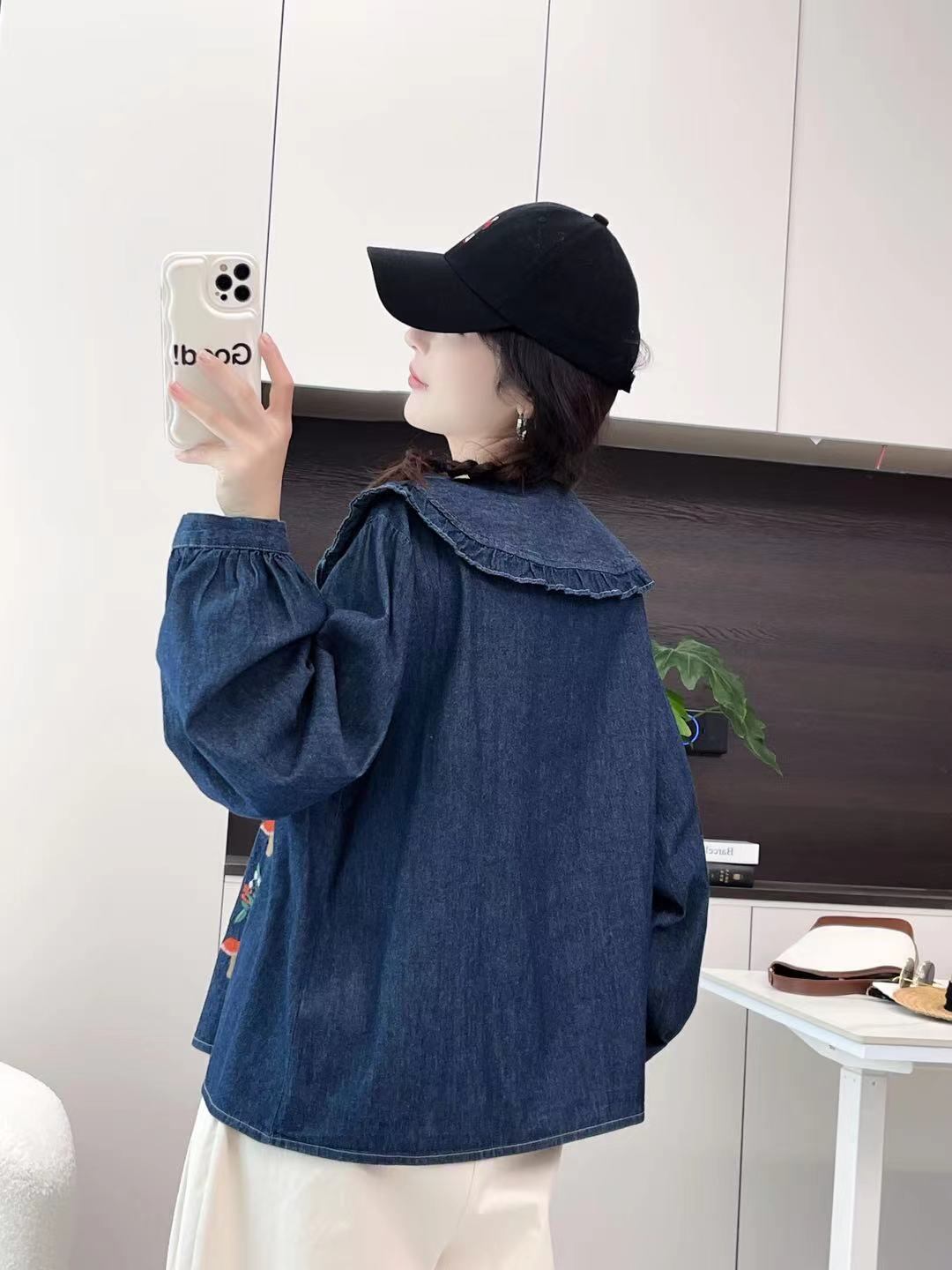 wcs-1147 デニス刺繡デザイン長袖トップスシャツ・ブラウス【2024春新作】