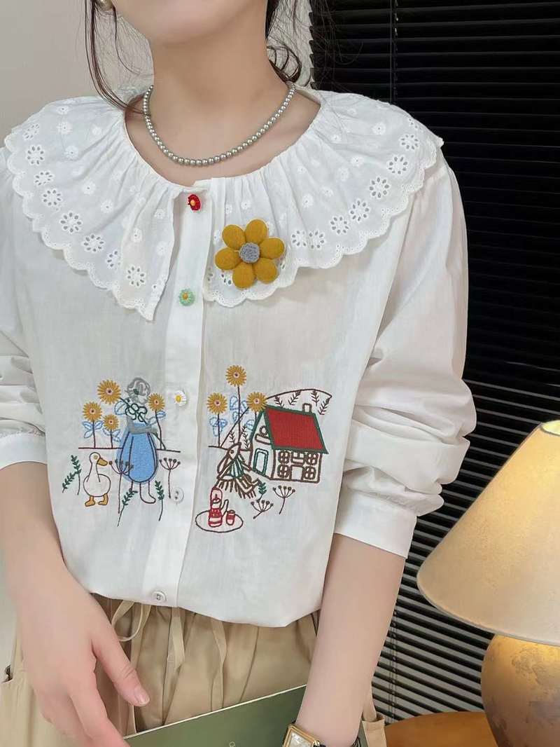 wcs-1170 刺繡花柄長袖トップスストライプシャツ・ブラウス【2024春新作】