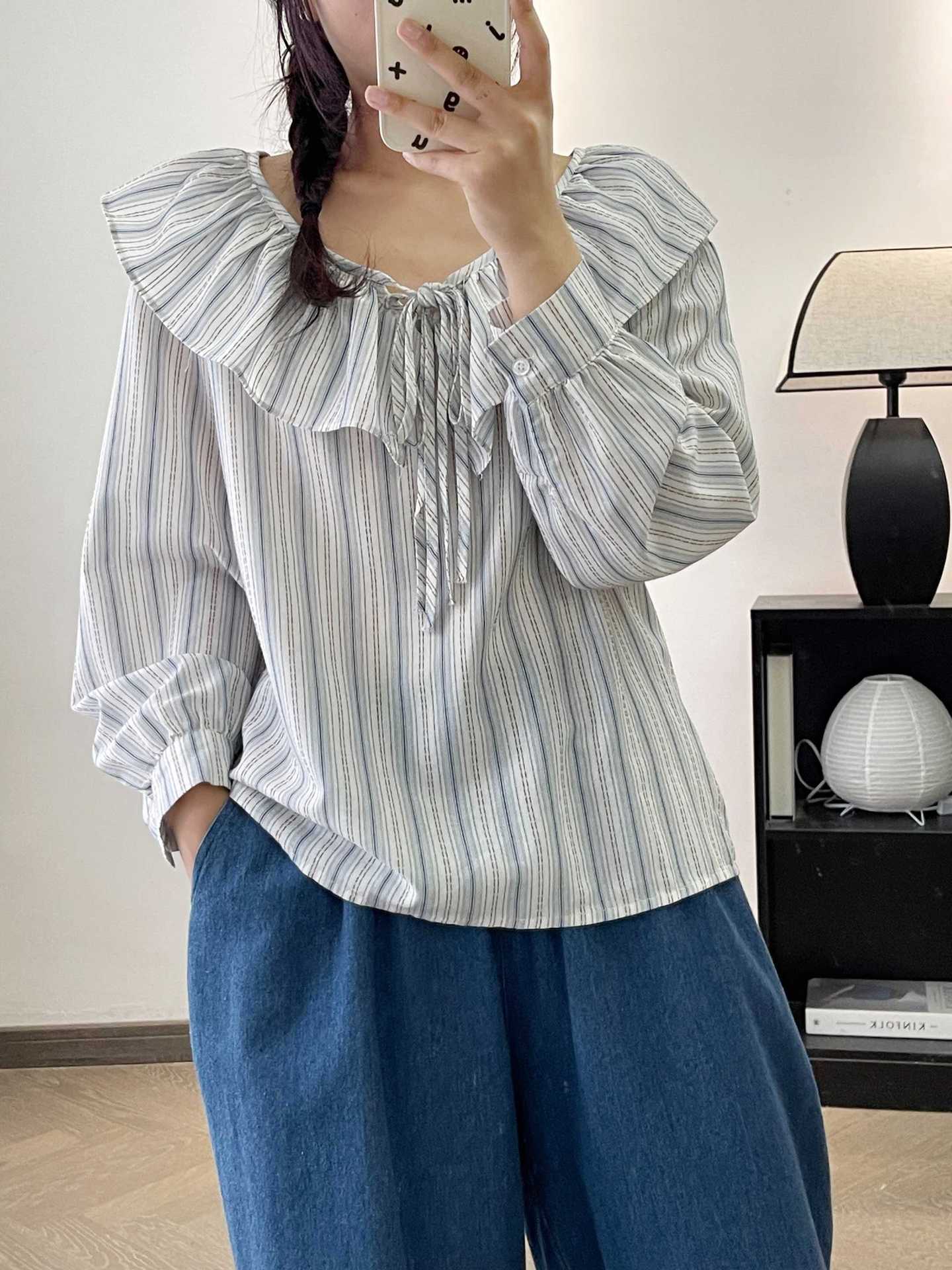 wcs-1187 ストライプデザイン長袖トップスストライプシャツ・ブラウス【2024春新作】