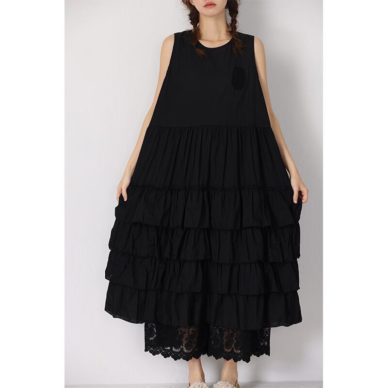nl-1387 フリルデザイン ロング丈ノースリーブ ワンピース【2024春夏新作】
