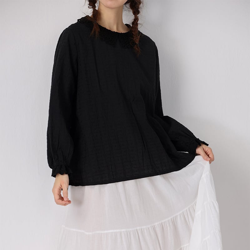 wcs-1212 レースデザイントップスストライプ長袖シャツ・ブラウス【2024春新作】