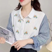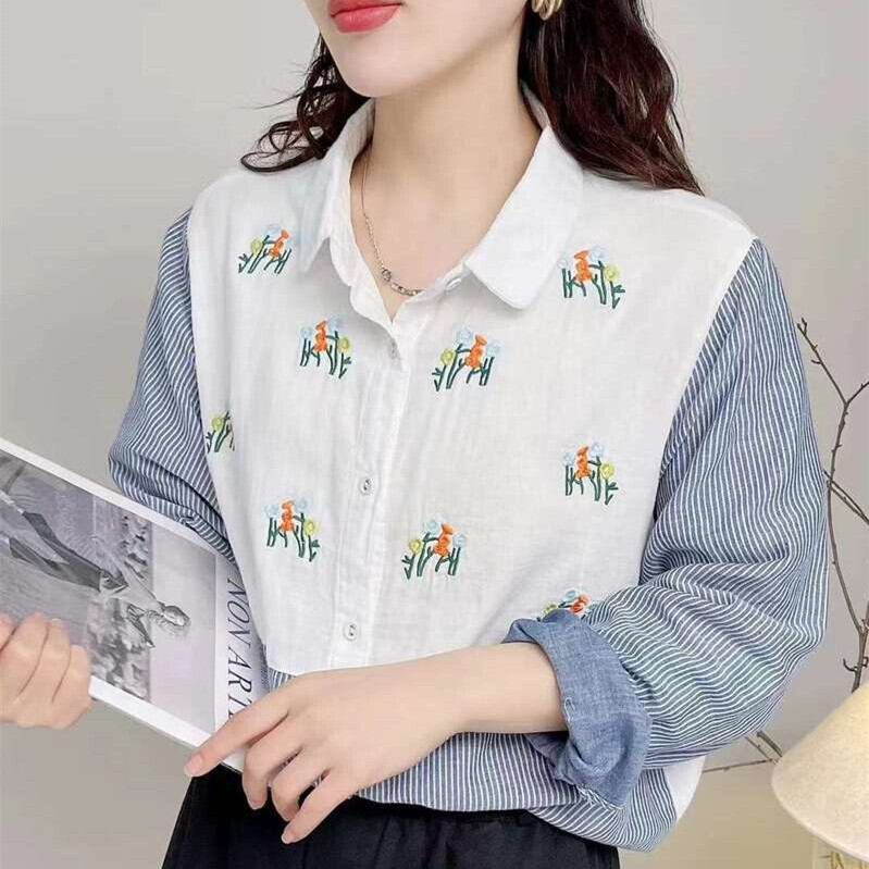 wcs-1357 切り替えストライプデザイントップス長袖シャツ・ブラウス【2024秋新作】