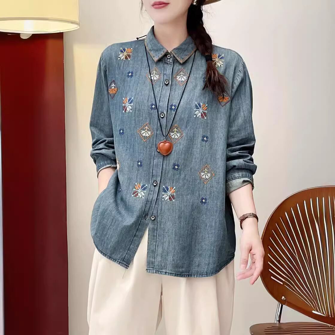 wcs-1364 刺繡デザイントップス長袖シャツ・ブラウス【2024秋新作】