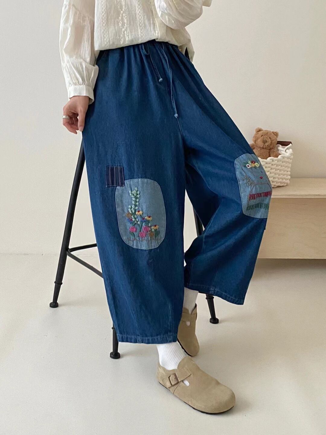 wk-837 花柄デザインデニムパンツカジュアル 【2024新作】