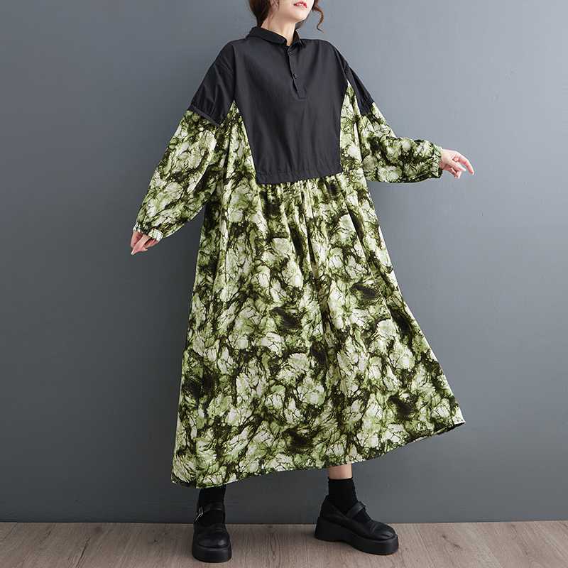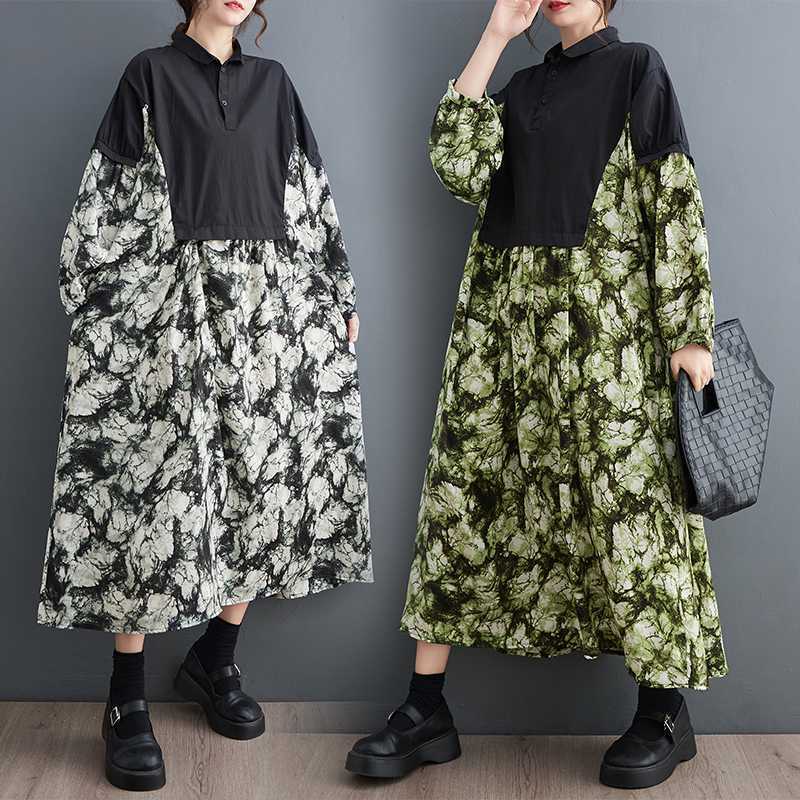 nl-1533 韓国風花柄切り替えデザインワンピースロング丈ワンピース【2024秋新作】