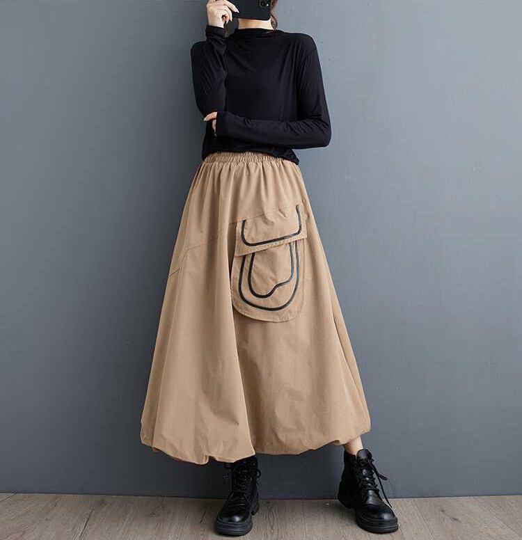 wq-610 韓国風切り替えデザインスカート ロングスカート ウエストゴム スカート【 2024秋新作】