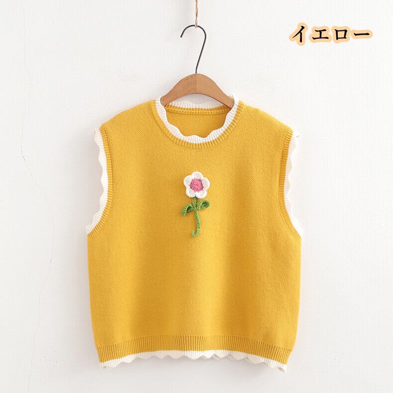 wb-339 花柄デザインカラフルなボタン ニットベストトップス【2024秋新作】