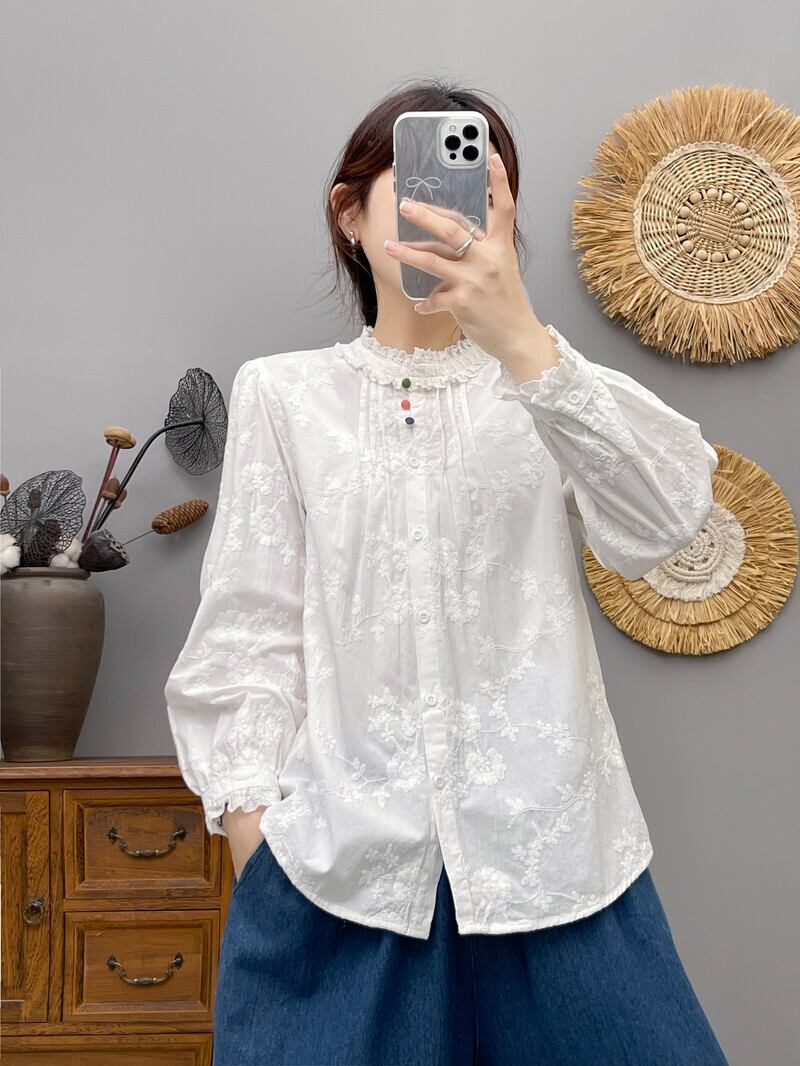 wcs-1423 花柄デザイントップス長袖シャツ・ブラウス【2024秋新作】