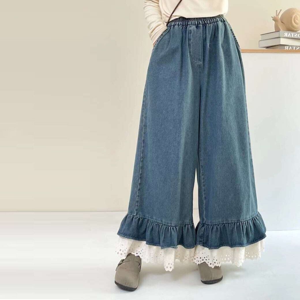 wk-843 秋新作デニムレースパンツ カジュアル 【 2024新作】