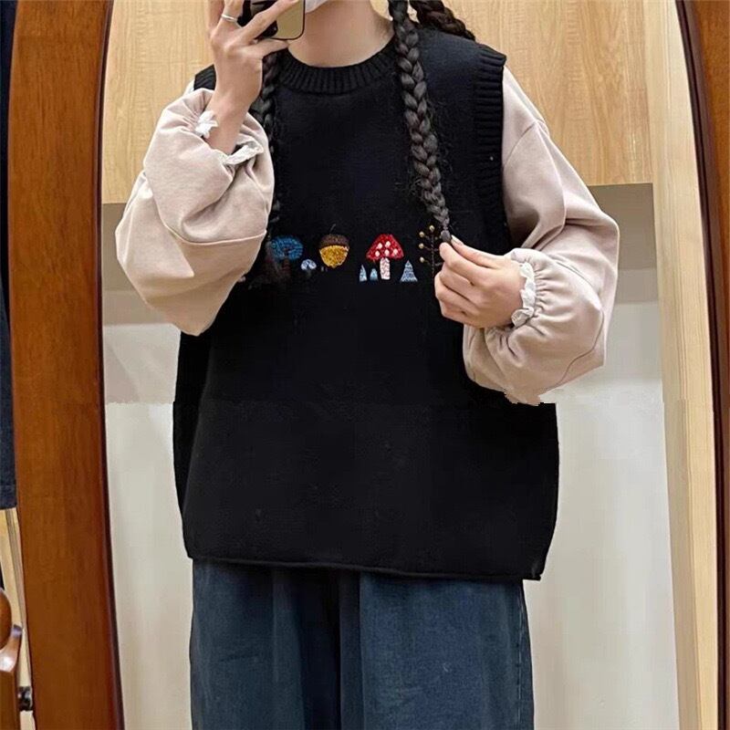 wb-361 秋冬刺繡デザインニットベストトップス【2024秋新作】