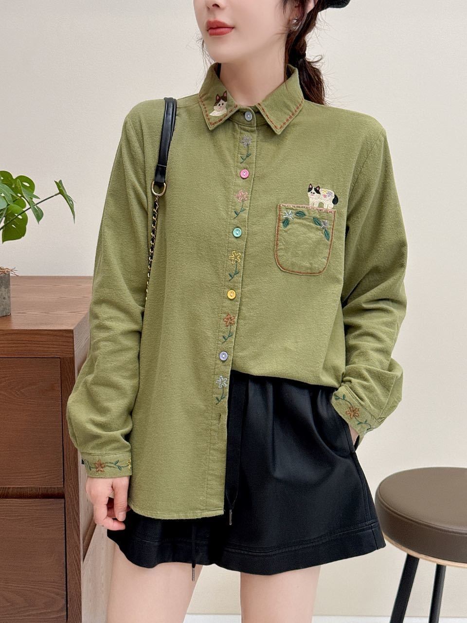 wcs-1479 秋新作刺繡デザイントップス長袖シャツブラウス【2024秋新作】