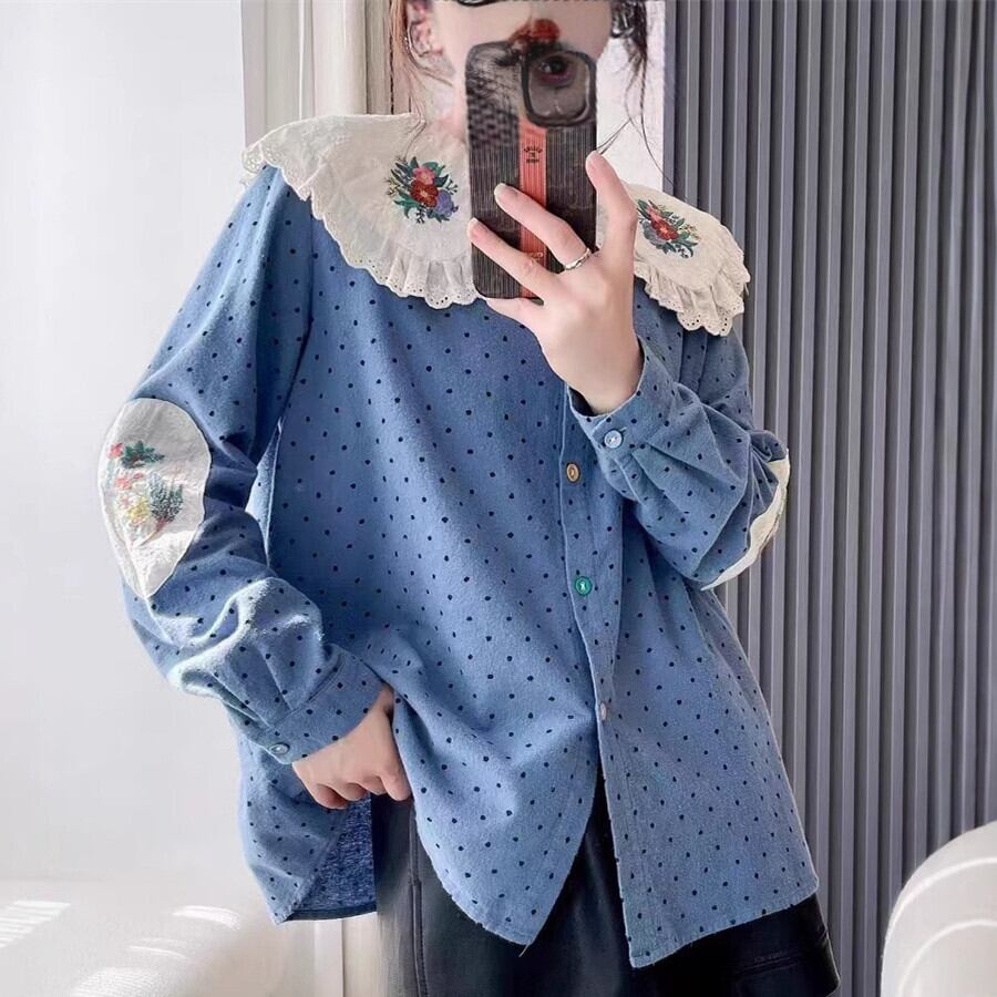 wcs-1480 秋新作刺繡レースデザイントップス長袖シャツブラウス【2024秋新作】