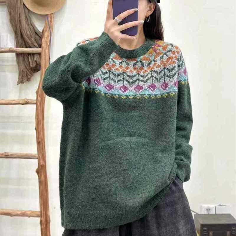 wnt-674 花柄秋冬ニットセータートップス暖かいカジュアル