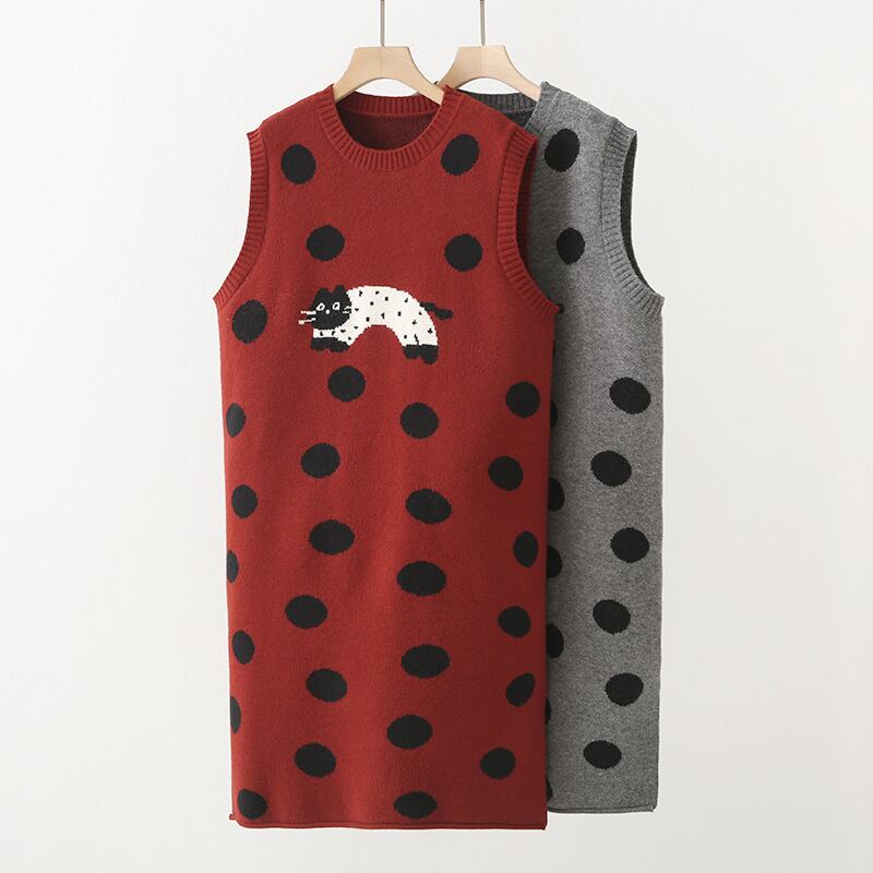 nl-1565 猫柄ドットプリントデザインノースリーブワンピース【2024秋冬新作】