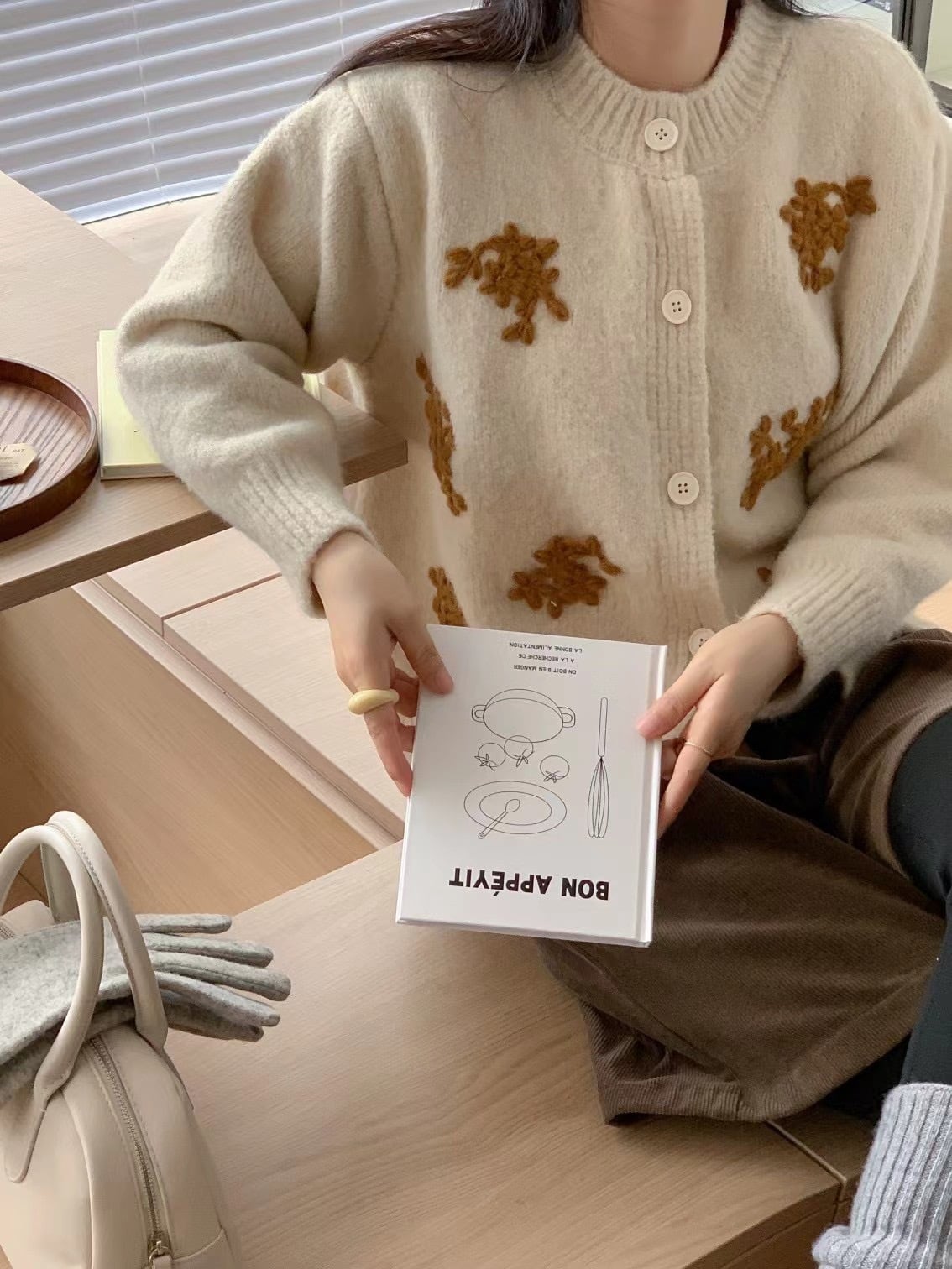ks-294 秋冬花柄デザインニットコート カジュアル