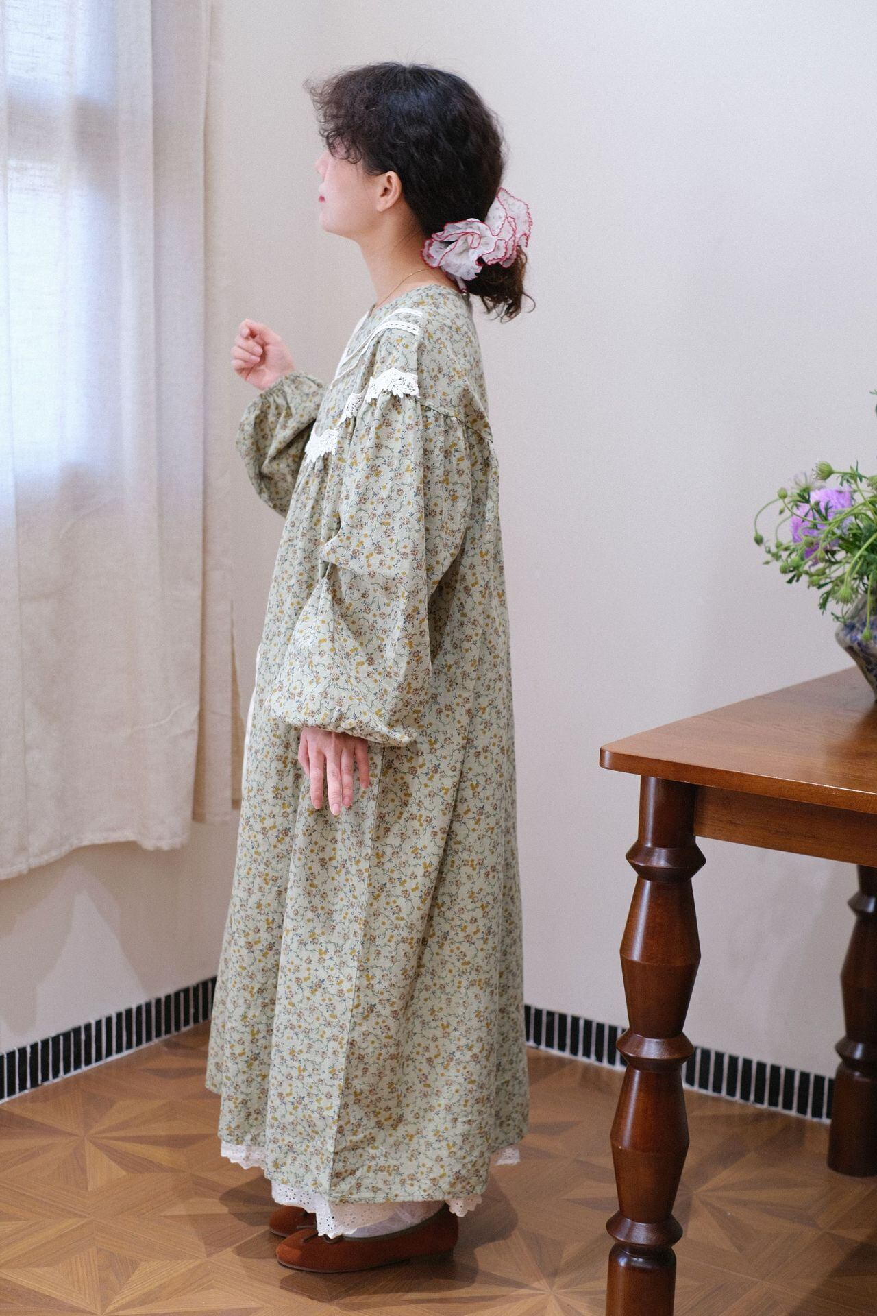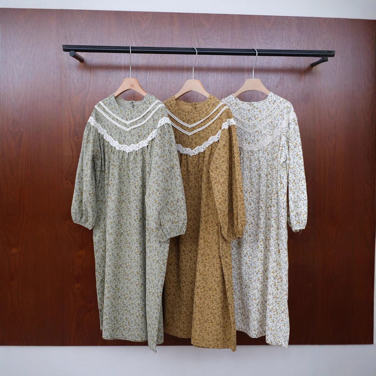 nl-1571 花柄 長袖デザイワンピースロング丈ワンピース【2025新作】